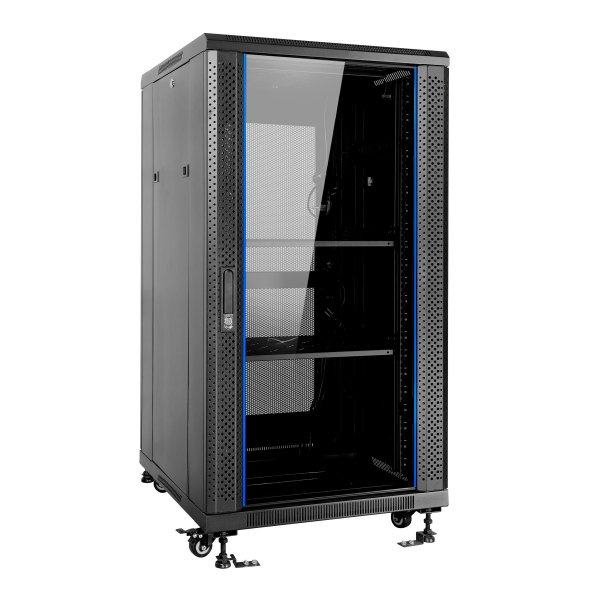 Aiten Data AI6822 Armario de Suelo 22U – Ancho 600 – Fondo 800 – Con Accesorios – Ruedas con Freno – Color Negro
