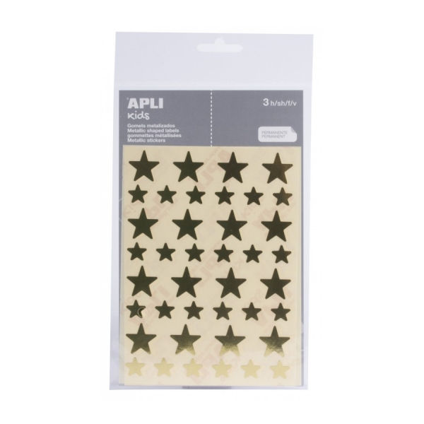 Apli Bolsa de Gomets en Forma de Estrella – Adhesivo Permanente – Adhesivo Base Agua – Libre de Disolventes – Color Oro
