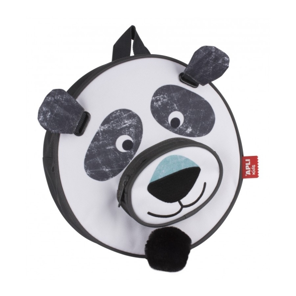 Apli Mochila Panda – Doble Compartimento – Cierre Cremallera – Asas Acolchadas y Regulables – Asa Superior para Colgar – Tira con Pompon de Cola de Panda – Ideal para Escuela y Guarderia
