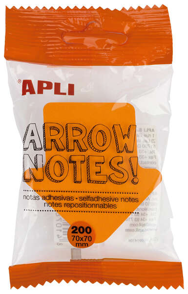 Apli Notas Adhesivas Flecha 70x70mm Bloc 200 Hojas – 4 Colores Surtidos – Fluorescentes – Destacables – Color: Surtido