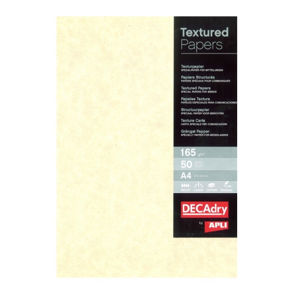 Apli Pack de 50 Hojas de Papel Pergamino – 165gr – Diseño en Ambos Lados – Compatible con Impresoras Inkjet, Laser y Fotocopiadoras – Color Champan