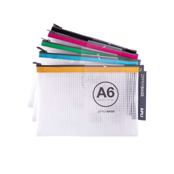 Apli Sobres Porta-Todo de Goma Eva Transparente – Tamaño A6 (168x125mm) – Cierre de Cremallera – Colores Surtidos