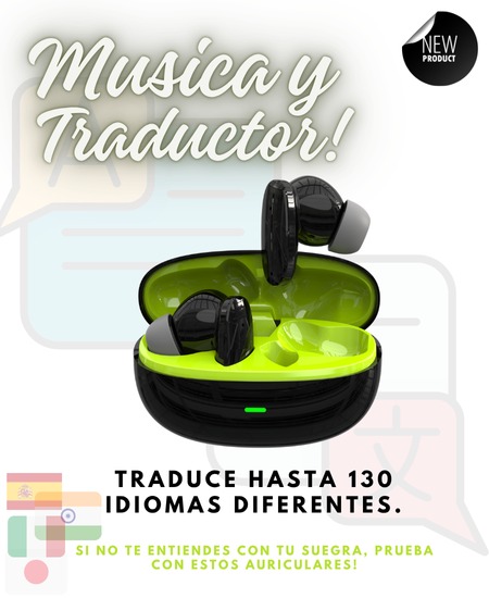 Auriculares con TRADUCTOR 130 Idiomas. Bluetooth + base de carga powerbank