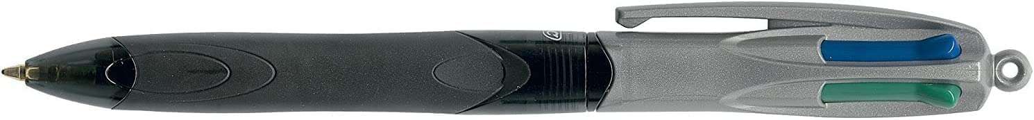Bic 4 Colours Grip Pro Boligrafo de Bola Retractil con Grip – Punta Media de 1mm – Trazo de 0.4mm – Tinta con Base de Aceite – Cuerpo Gris/Negro Transparente – 4 Colores