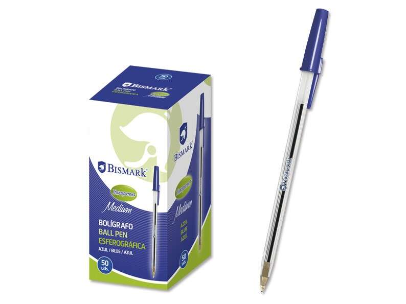 Bismark Boligrafo de Bola – Punta Redonda – Capuchon y Tapon del Color de la Tinta – Color Azul