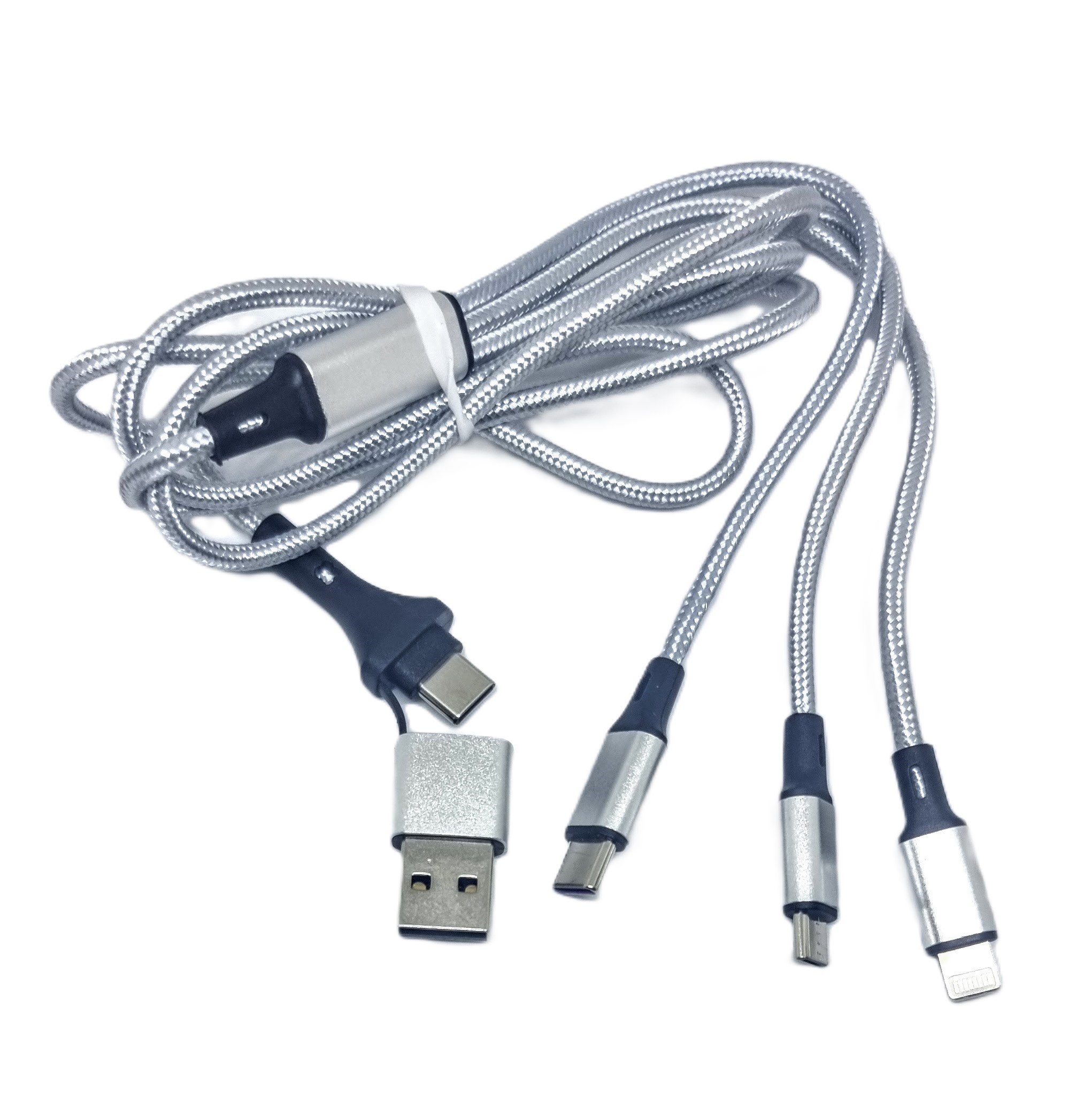 Cable 5 en 1: USB2.0/Tipo C a Microusb/Tipo C/Lightning. Transferencia+Carga (3A)/1,2m.