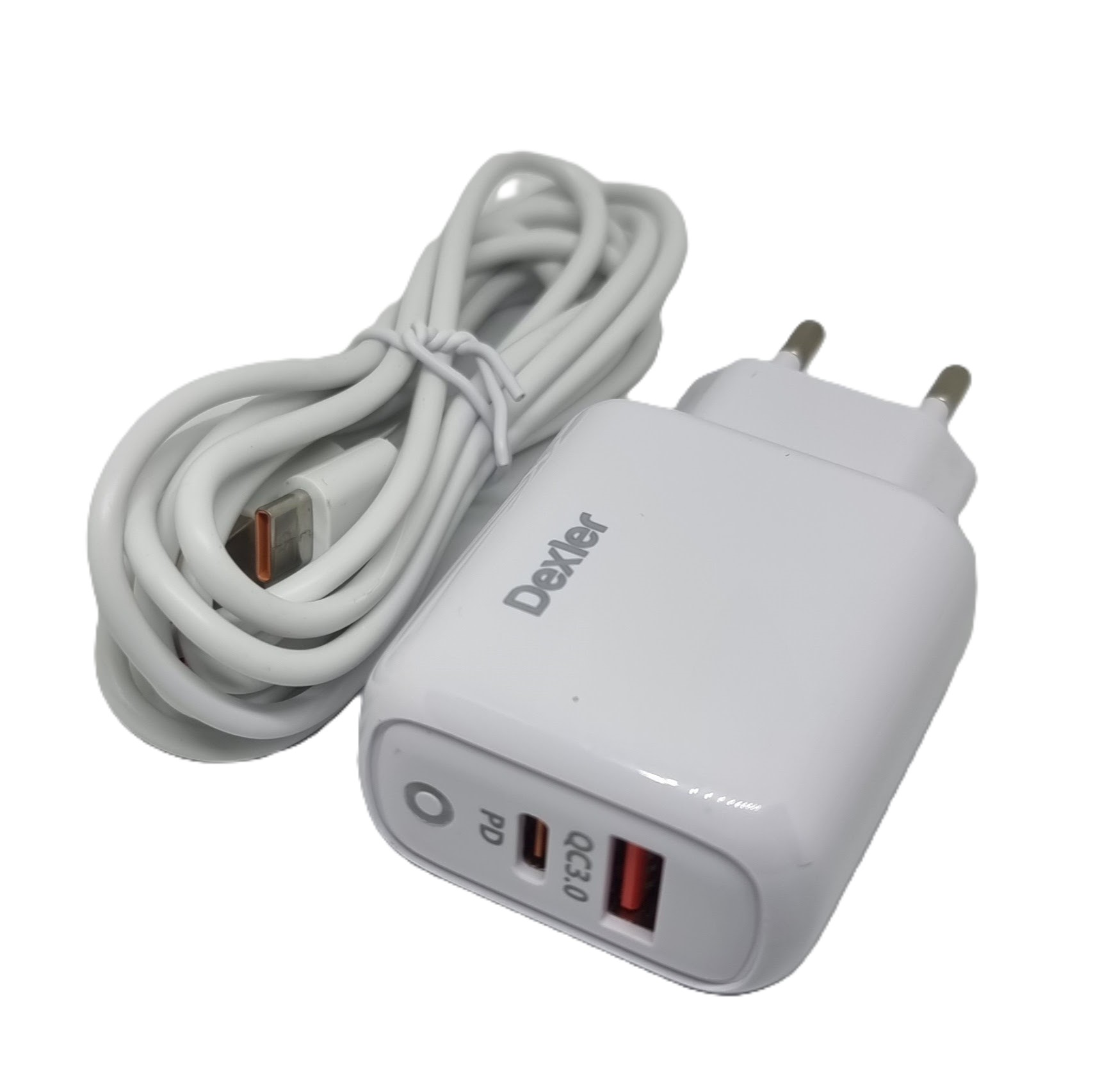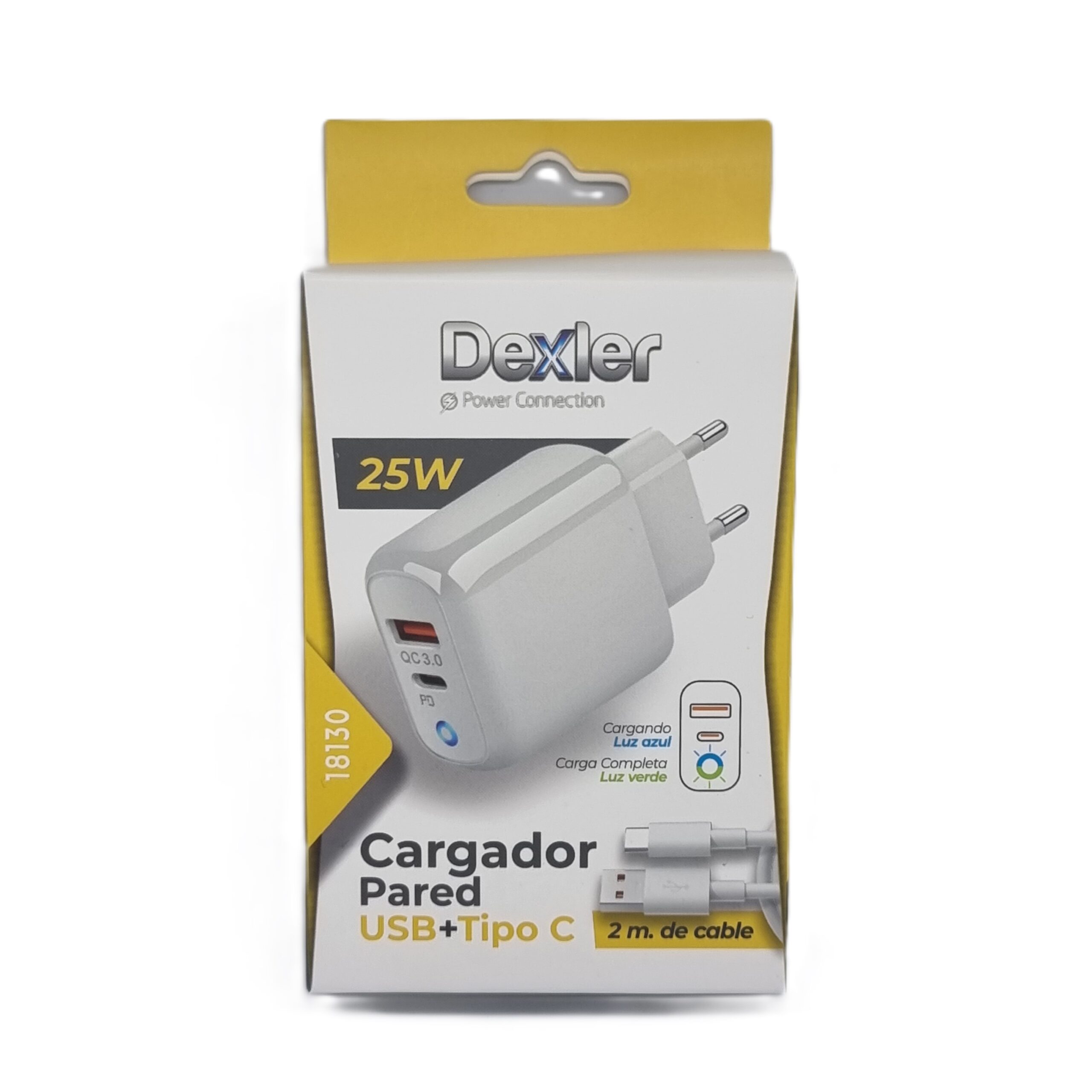 Cargador de pared Qualcomm USB/Tipo C + Cable USB a Tipo C de 2m.