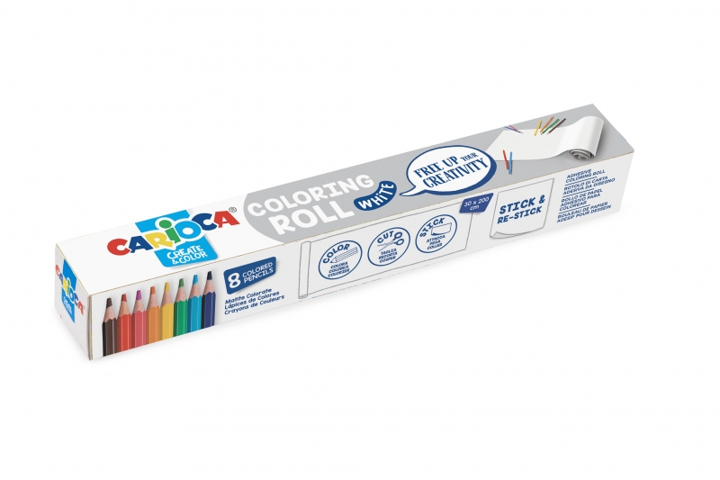 Carioca Coloring Roll White Rollo de Papel Adhesivo para Colorear + 8 Lapices de Colores Surtidos