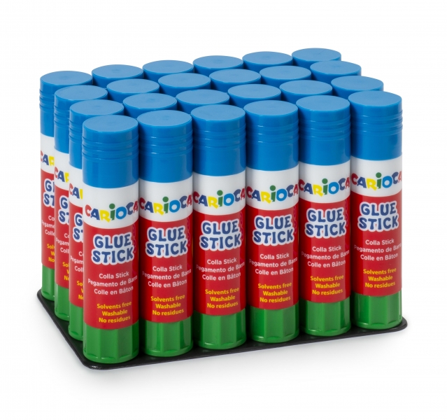 Carioca Expositor de 24 Pegamentos de Barra – Ideal para Casa, Colegio y Oficina – Pega Papel, Fotos y Tejidos – sin Disolventes – Color Varios