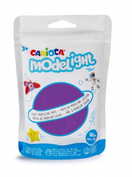Carioca Modelight Pack de Pasta de Moldear Super Ligera – Elastica y Maleable – Se Seca al Aire – No Ensucia las Manos – Reutilizable con Agua – Color Morado