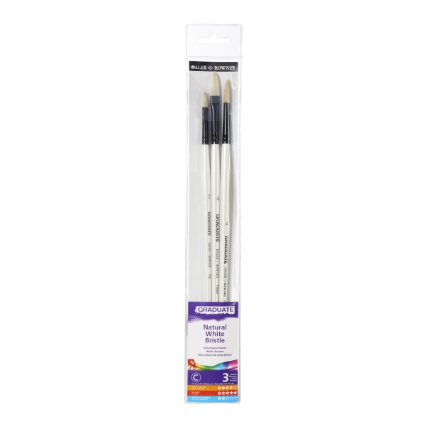 Daler Rowney Graduate Pack de 3 Pinceles para Oleo – Pelo de Cerda Natural – Mango Largo