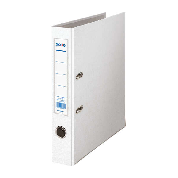 Dohe Archivador de Palanca A4 – Lomo de 45mm – Con Ollao, Rado y Tarjetero en el Lomo – Carton Forrado con Polipropileno – Cantoneras Metalicas – Color Blanco