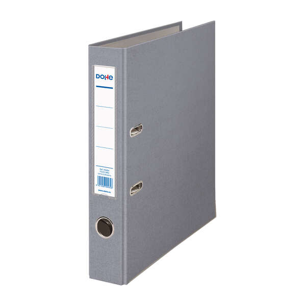 Dohe Archivador de Palanca Folio – Lomo de 45mm – Con Ollao, Rado y Tarjetero en el Lomo – Carton Forrado con Polipropileno – Cantoneras Metalicas – Color Gris