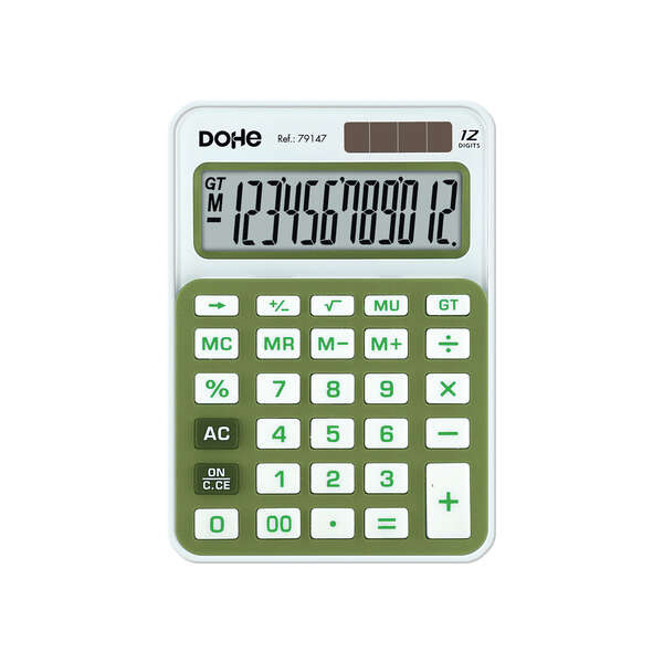 Dohe Calculadora de Sobremesa Pequeña 12 Digitos – Teclas de Gran Formato – 4 Teclas de Memoria – Apagado Automatico – Alimentacion Solar y Pilas – Color Blanco/Verde