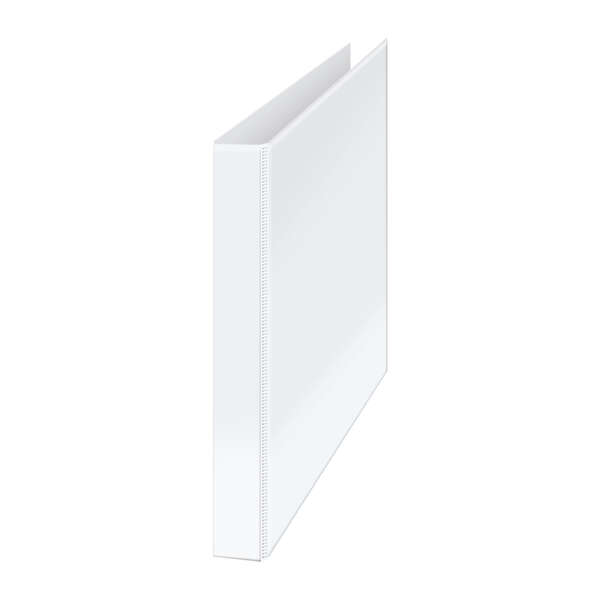 Carpetas en cartón forrado con PVC blanco en tamaño Din A-4. Con bolsa de plástico transparente en el lomo y portada para personalización. Mecanismo de anillas mixtas.