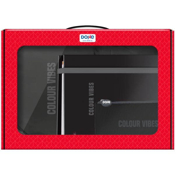 Dohe Colour Vibes Pack de Mochila + Carpeta A4 Recambio + Portatodo Triple – Todo en un Maletin Perfecto para Regalo – Color Negro