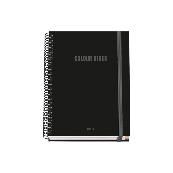 Dohe Colour Vives Cuaderno Espiral A5 100 Hojas Cuadricula 5mm – Tapa Dura Impresa a todo Color y Plastificada en Brillo – Bandas de Color – Cierre de Goma – Color Negro