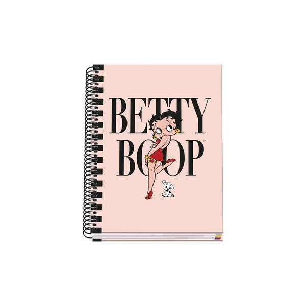 Cuaderno en espiral de tapa dura tamaño A5 ( 162 x 210 mm. Cubierta en cartón forrado con papel impreso a todo color y plastificado brillo. Guardas impresas. Cuaderno con espiral metálico color Negro. Interior de 100 hojas en papel offset de 90 gramos microperforadas, con taladros y cuadrícula de 5 mm con banda de color. Con certificado FSC Mixto