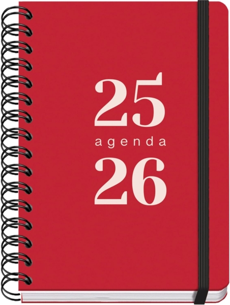 Dohe Grammar Agenda Escolar 25/26 Espiral A6 – Dia Pagina – Papel 80g/m2 – Cubierta de Polipropileno – Cierre de Goma Elastica – Color Rojo