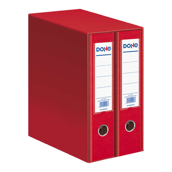 Dohe Modulo de 2 Archivadores A4 Lomo Ancho con Ollao y Rado – Carton Forrado con Polipropileno – Cantoneras Metalicas – Palanca de Maxima Calidad – Color Rojo