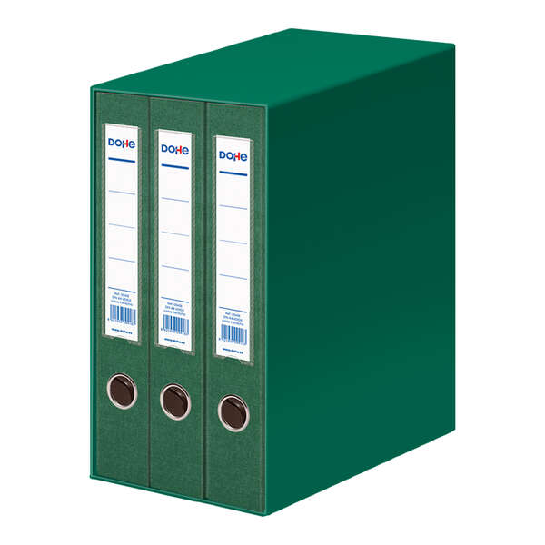 Dohe Modulo de 3 Archivadores A4 Lomo Estrecho con Ollao y Rado – Carton Forrado con Polipropileno – Cantoneras Metalicas – Palanca de Maxima Calidad – Color Verde