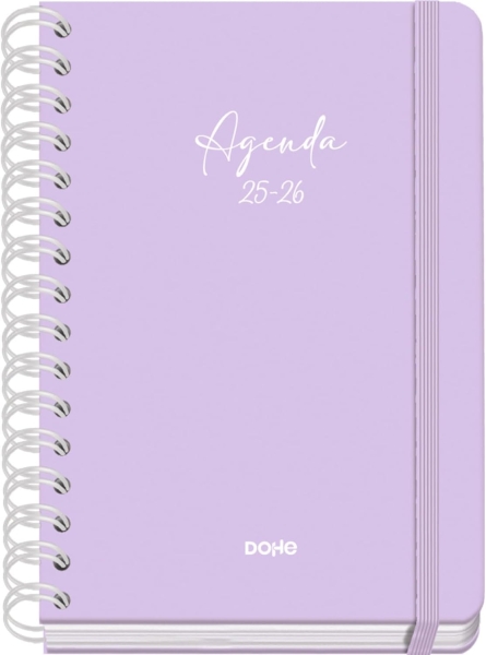 Dohe Serenity Agenda Escolar 25/26 Espiral Wire’o A5 – Semana Vista – Papel 80g/m2 – 4 Hojas de Pegatinas – Cubierta de Carton Plastificado – Cierre con Goma Elastica – Color Morado