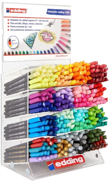 Edding 1200 Expositor con 320 Rotuladores – Punta Redonda – Tinta con Base de Agua – Colores Surtidos