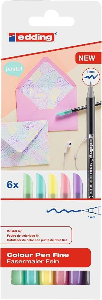Edding 1200 Pastel Pack de 6 Rotuladores – Punta Redonda – Trazo 1mm – Tinta con Base de Agua – Colores Pastel Surtidos