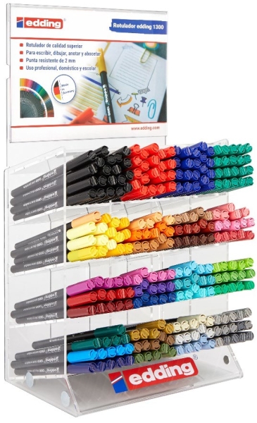 Edding 1300 Expositor con 260 Rotuladores – Punta Redonda – Trazo Medio – Tinta con Base de Agua – Colores Surtidos