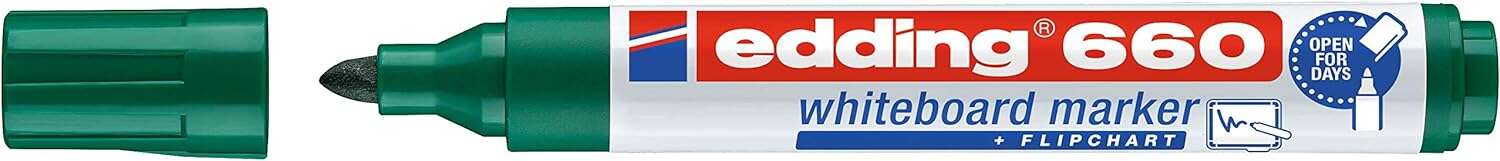 Edding 660 Rotulador para Pizarra Blanca – Punta Redonda – Trazo entre 1.5 y 3 mm. – Tinta Pigmentada – Recargable – Borrable en Seco – Color Verde