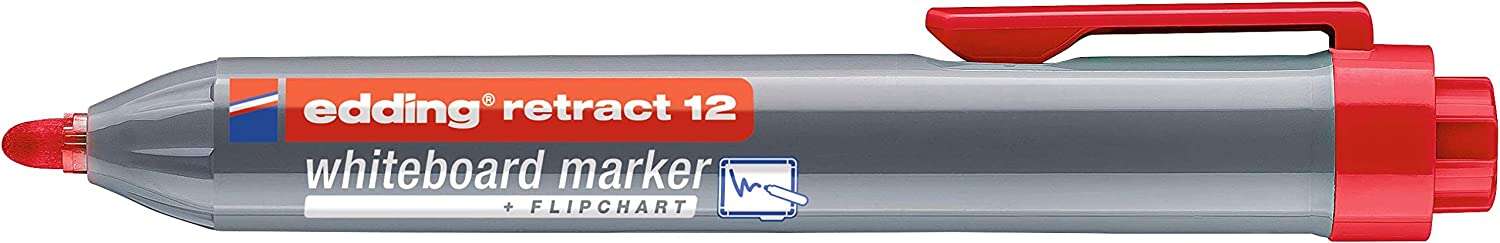 Edding Retract 12 Rotulador para Pizarra Blanca Retractil – Punta Redonda – Trazo entre 1.5 y 3mm – Recargable – Secado Rapido – Color Rojo