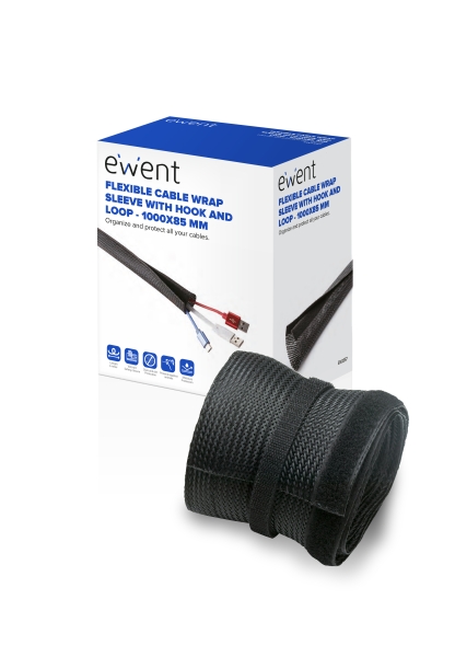 Ewent Manguito Organizador de Cable Polyester – Cierre de Velcro – 1m – 85mm – Color Negro