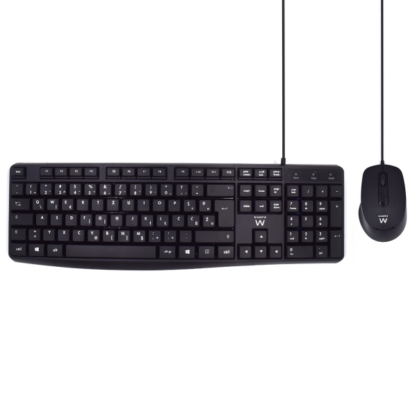 Ewent Pack Teclado + Raton para Oficina – Teclas Silenciosas de Perfil Bajo – 1000dpi – Disposicion Inglesa QWERTY US – Cable de 1.35m – Teclas Silenciosas de Perfil Bajo – Color Negro