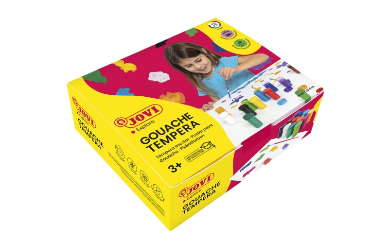 Jovi Gouache Tempera Estuche de 12 Botes 15ml – Mezclables – para Papel, Cartulina, Madera, Tela, Pasta de Modelar y Fango – Incluye Pincel – Color Surtido