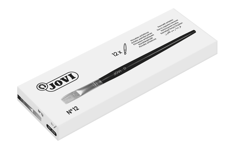 Jovi Pinceles Artisticos Planos Pelo de Cerda Nº 12 – Pelo Natural – Mango de Madera – Punta Plana – Pelo Duro – Color Varios