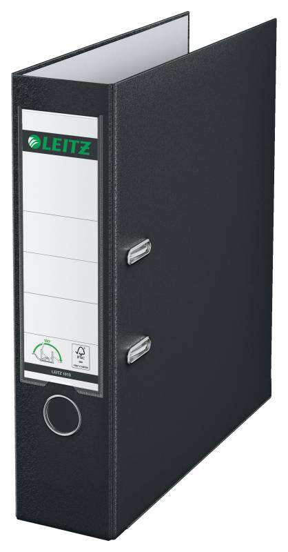 Leitz 180º Archivador de Palanca Tamaño A4 – Lomo Ancho 80mm – Ollao, Rado y Tarjetero en el Lomo – Carton Forrado en Plastico – Cantoneras Metalicas – Color Negro
