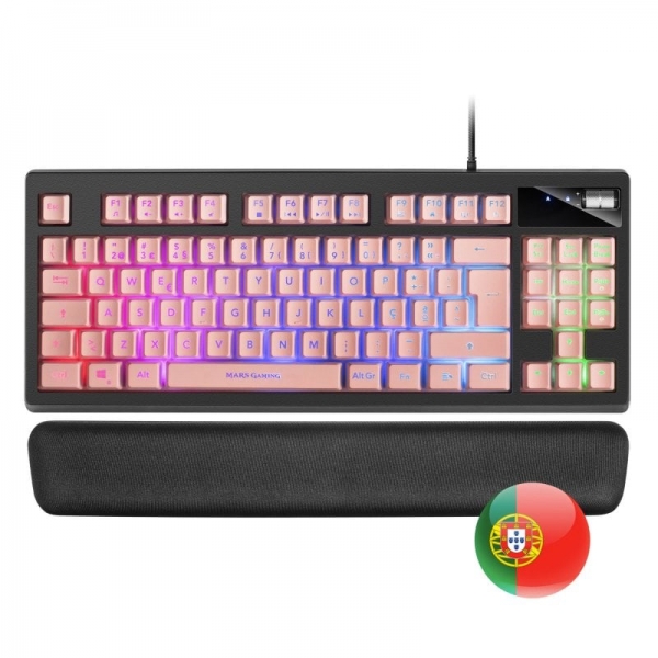 El teclado gaming MKAX de Mars Gaming ofrece todo lo que necesitas para una experiencia de juego profesional, en un formato compacto y con un diseño espectacular. Disponible en tres versiones con acabados en negro, blanco y rosa, está equipado con una potente iluminación RGB Control que ofrece hasta 9 efectos y una pulsación híbrida totalmente precisa.