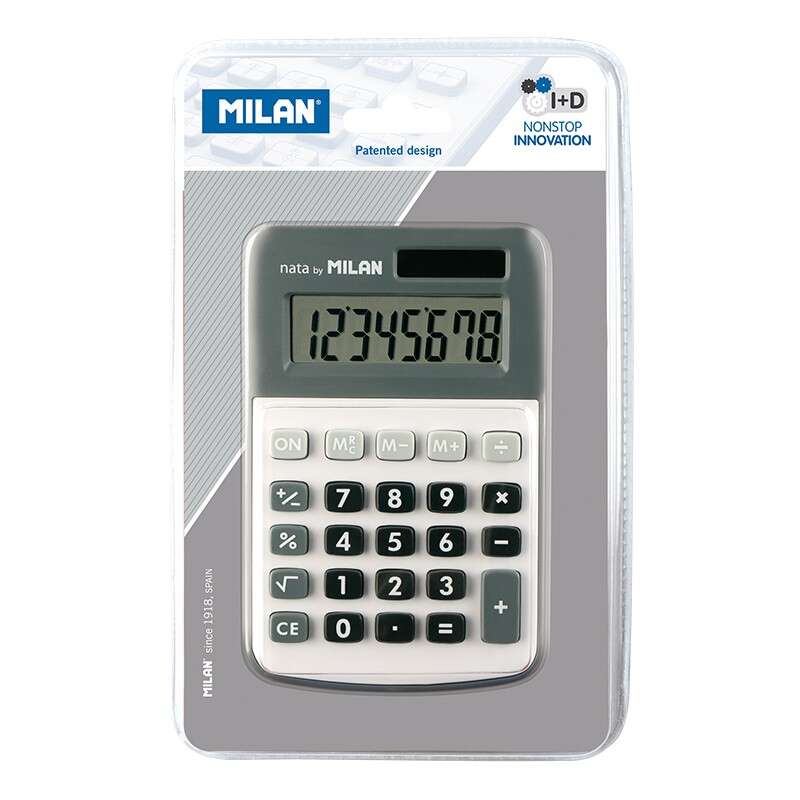 Milan Calculadora de 8 Digitos – Calculadora de Sobremesa – 3 Teclas de Memoria y Raiz Cuadrada – Color Gris