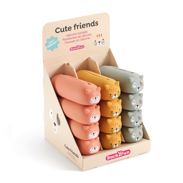 Miquel Rius Back2Fun Animales Cute Expositor con 12 Portatodos de Silicona – 4 de cada Modelo de Animal – Cierre con Cremallera
