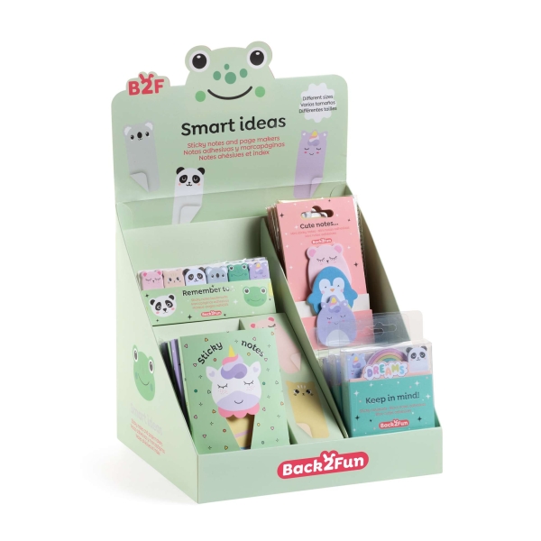 -El expositor incluye: 24 Piezas Surtidas de Notas Adhesivas, Blocs Notas Adhesivas, Marcapaginas Adhesivos, Mininotas Adhesivas