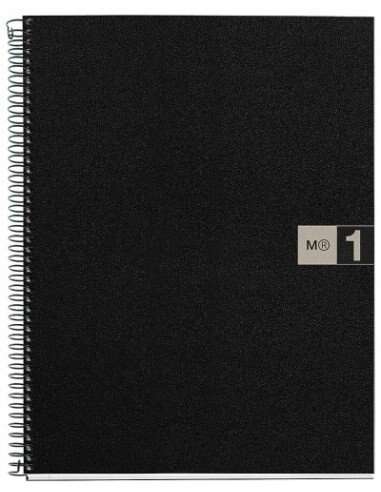 Miquel Rius Notebook1 Cuaderno de Espiral Formato A4 – 80 Hojas Microperforadas con 4 Taladros – Cuadricula 5×5 – Banda de las Hojas Gris – Cubiertas de Polipropileno – Color Negro