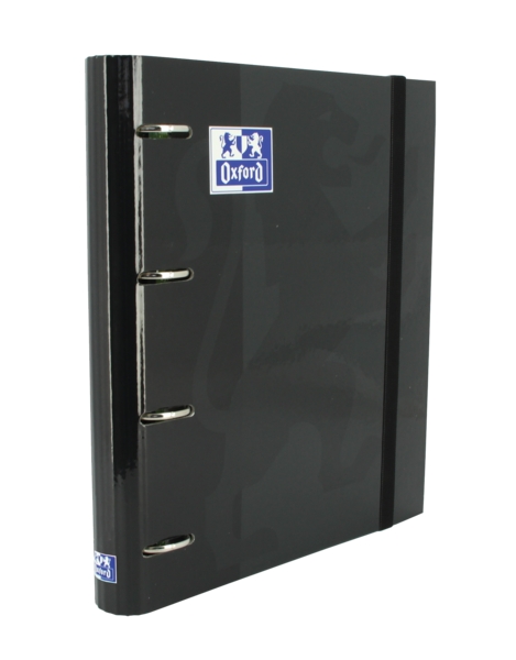 Oxford Europeanbinder Classic A4+ Carpeta de Anillas con Recambio Cuadricula 5×5 – Tapa Extradura – Cierre con Goma Elastica – Color Negro