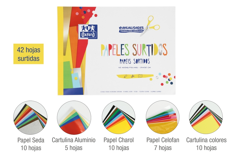 Oxford Manualidades Bloc Encolado Papeles Surtidos A4+ – Tapa Blanda – 42 Hojas – Ideal para Proyectos Creativos