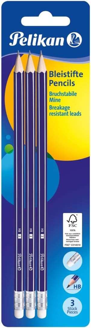Pelikan Blister de 3 Lapices de Madera HB – Punta de Grafito HB – Cuerpo Barnizado – Mina Resistente