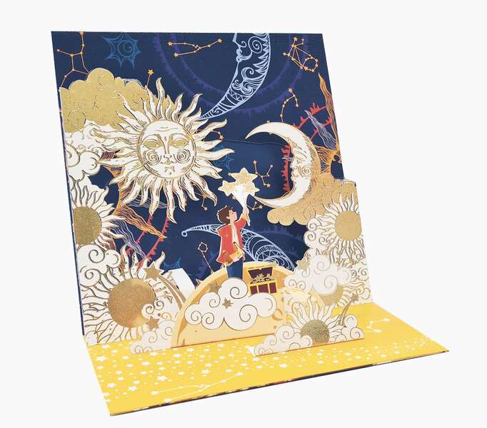 Pictura Tarjeta 3D Pop-Up – 16x16cm – Tematica Astros – Embolsada en Celofan – Incluye Sobre Blanco – Papel con Certificacion FSC