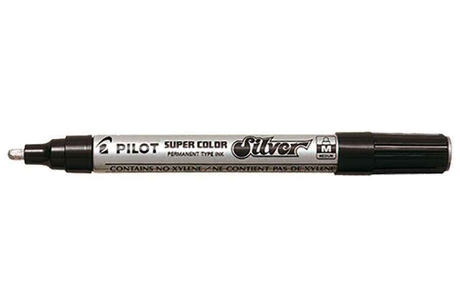Pilot Super Color Rotulador Permanente – Punta de 4,5mm de Poliacetal – Tinta muy Densa y Opaca – Cuerpo Metalico – Color Plata