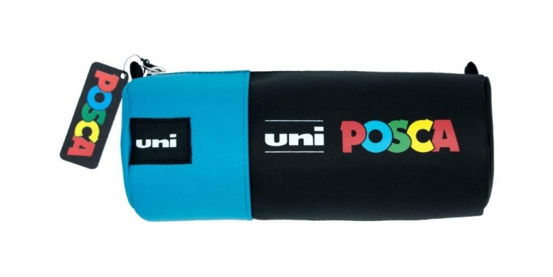 Posca Estuche de Lona 8,5×19,5cm – Ideal para Rotuladores y Utiles Escolares – Cierre de Cremallera – Color Negro/Azul