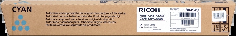 Ricoh Aficio MP-C2500/MP-C3000 Cyan Cartucho de Toner Original – 888643/888639/884949/842033