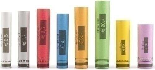 – Pack de 102 rollos: Este pack incluye 12 rollos para monedas de 0,01€, 0,02€ y 0,05€, 13 rollos para monedas de 0,10€, 0,20€ , 0,50€ y 2,00€ y 14 rollos para monedas de 1,00€.