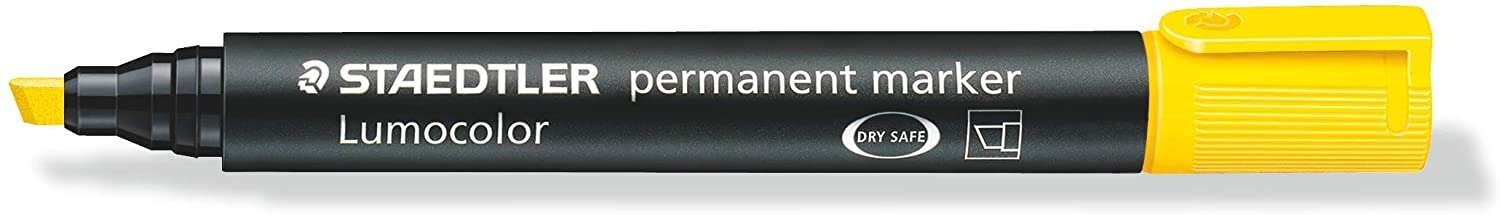 Staedtler Lumocolor 350 Rotulador Permanente – Punta Biselada 2-5mm aprox. – Tinta Base de Alcohol – Secado Rapido – Color Amarillo